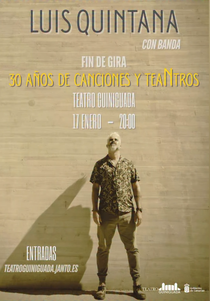 En un concierto de Luis Quintana sus canciones son un anzuelo, y el cebo una voz inolvidable, una voz con una capacidad de registros envidiable. Ante todo esto es casi imposible no morder. Es un cantautor que lo mismo se entrega en un concierto íntimo para 20 personas en un Pub que hace cantar con él a más de 30.000 personas en el Estadio de Gran Canaria el Himno que él mismo compuso para el Club de Fútbol de la Unión Deportiva Las Palmas.